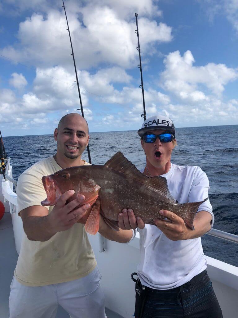 On the drift boat: the Lois Ann – our anglers have been on a hot streak on the grouper. I always say there are no fences when fishing on the Lois Ann. You have the opportunity to catch all the big game fish we catch on the sportfising boats, however you have a higher chance of catching grouper and all for only $45! You are generally fishing the bottom where the grouper live in their holes and come out to feed on bait fish such as ballyhoo, pilchards and other small reef fish. Here our angler got a nice one!